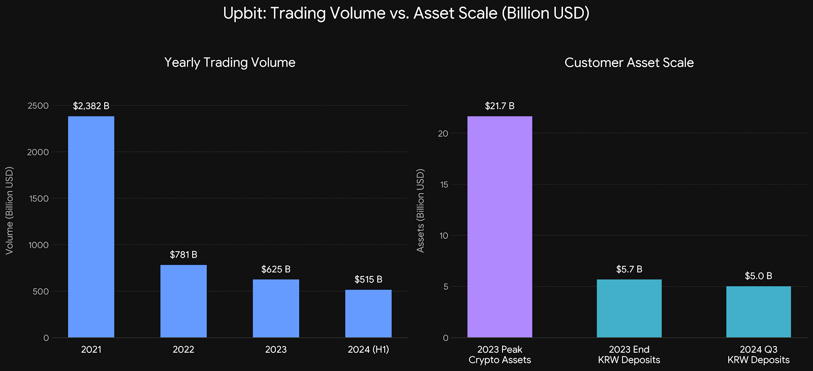 이 구조를 이해하고 나면 자연스럽게 이 질문으로 연결된다 — 한국에는 이 공식이 적용될 수 있는 거래소가 있는가? 그 질문의 답이 업비트의 Giwa 체인이다. 하지만 그 가능성을 이야기하기 전에, 먼저 현재 한국 크립토 시장이 어떤 상황인지 냉정하게 살펴봐야 한다.